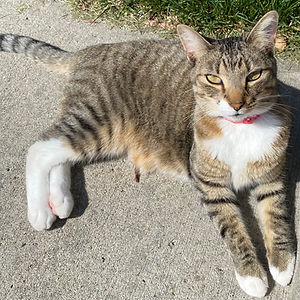 Brown Tabby with white neck, belly, and paws